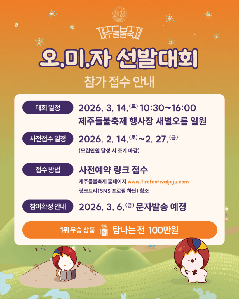 2026 제주들불축제에서 오름에 美친 자(오.미.자)를 찾습니다.